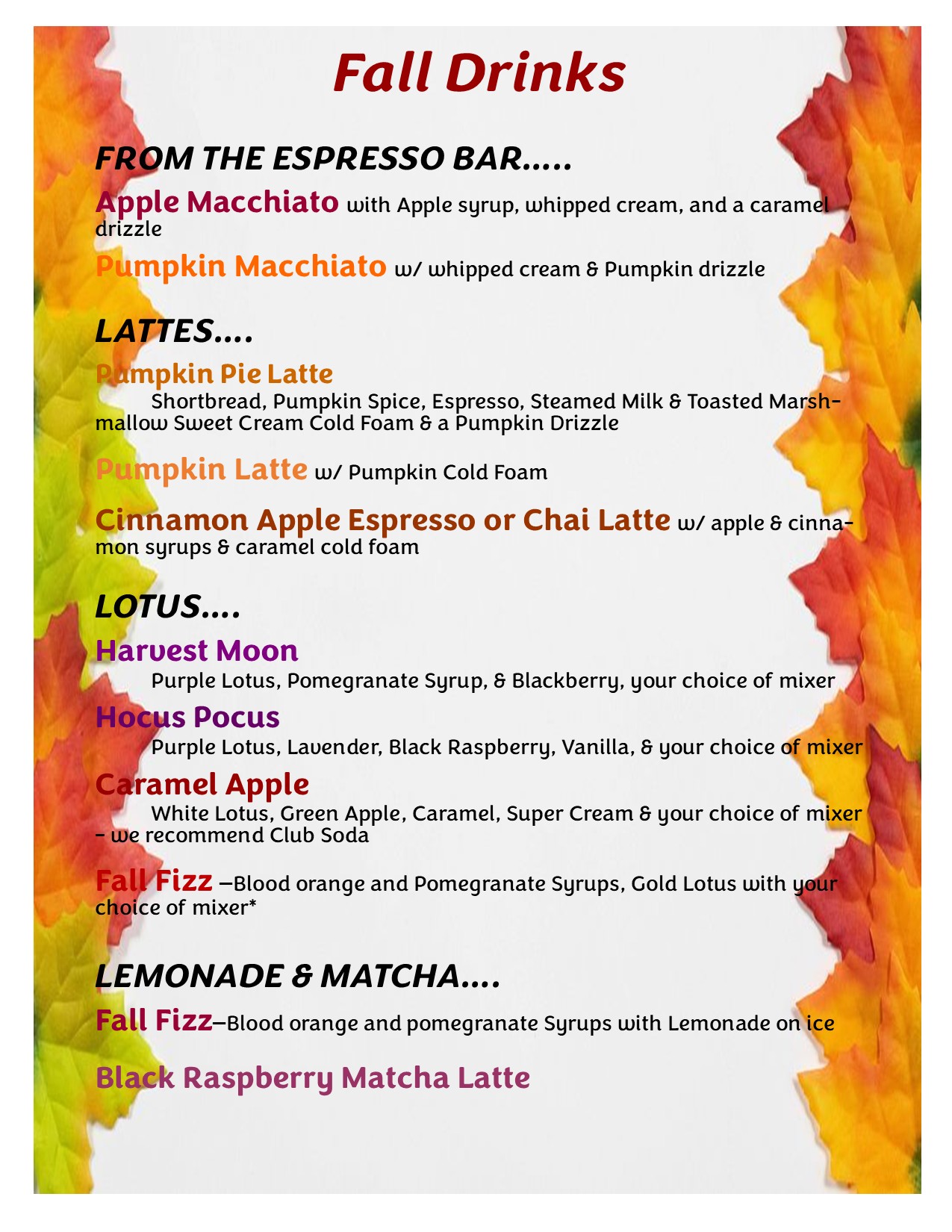 WE HAVE ESPRESSO, LOTUS, & SPECIALTY DRINKS.